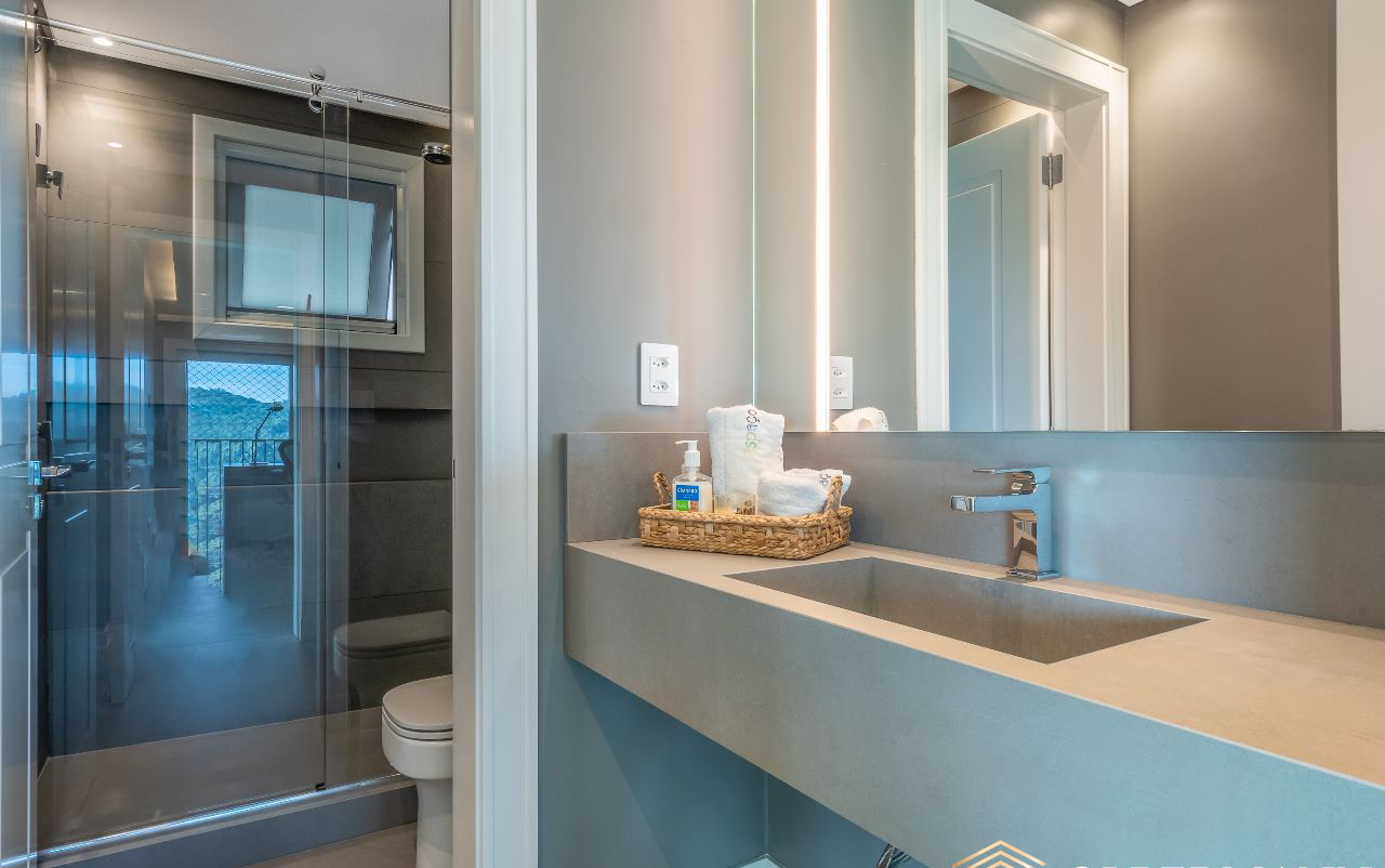 Cada detalhe foi meticulosamente planejado. Os vidros duplos, a calefação, o aquecimento solar e o ar-condicionado split proporcionam um ambiente perfeito durante todas as estações. As persianas automatizadas e a fechadura digital elevam a segurança e praticidade a níveis excepcionais.