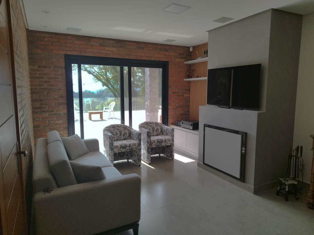 🛋️ Salas: Sala de estar com lareira e sala de estar e cozinha integradas
